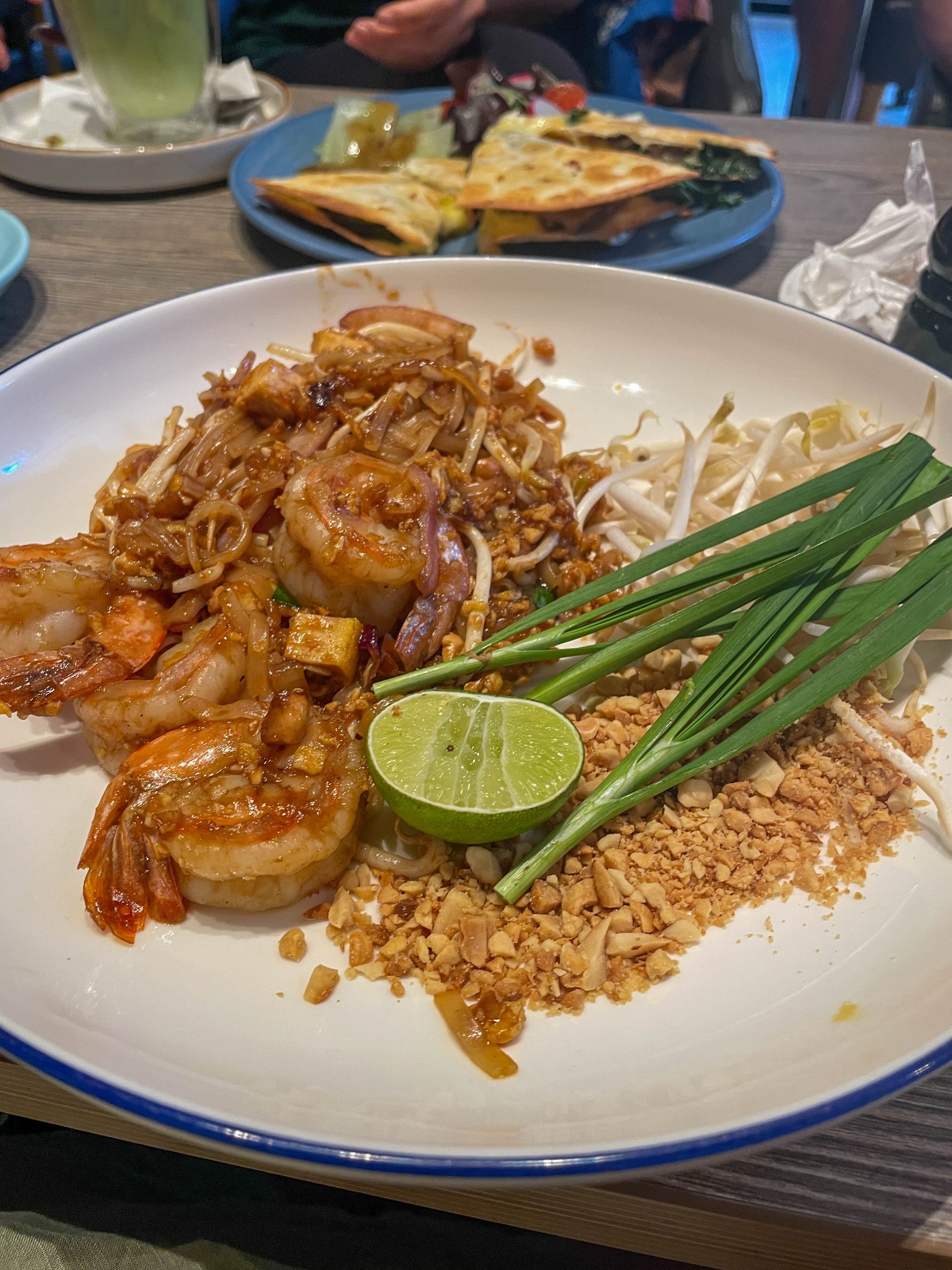 Funny enough, two of April’s friends were flying to Krabi as well, so we were able to book an 8-seater Grab van to Krabi since the airport we land in was about an hour drive from the actual city. Once we arrived at the hotel, we dropped off our stuff, but our rooms weren’t ready until 2pm. Everyone was pretty hungry though, so we decided to walk from the hotel into town to find some food.