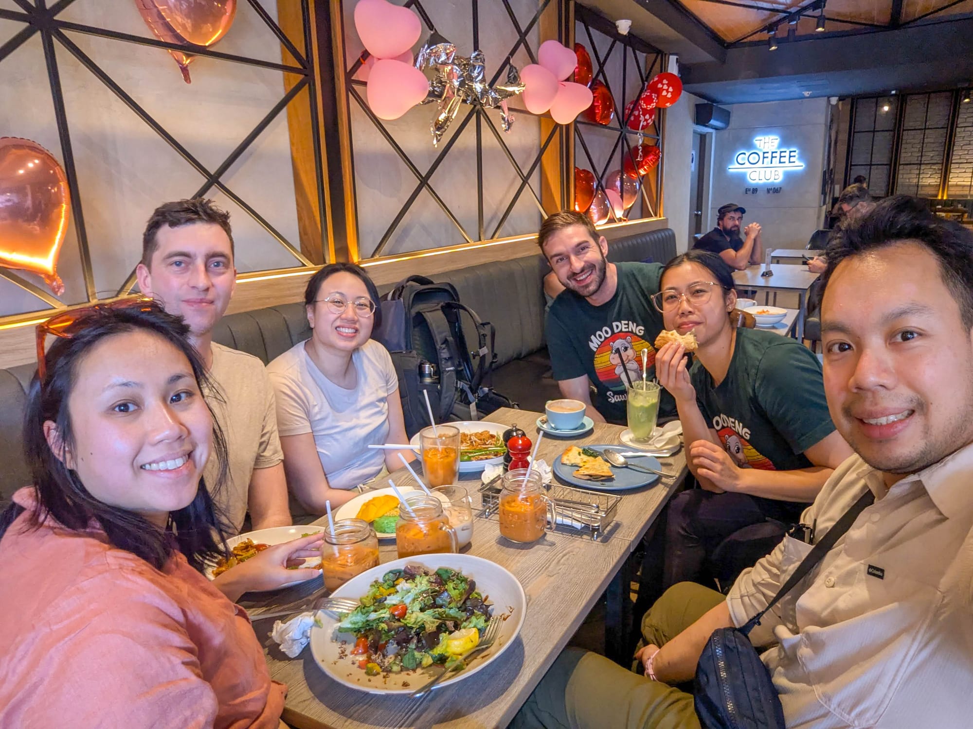 So no time for breakfast, we grabbed food instead at the airport. Poor Jeff was definitely super tired at this point. We literally have been on the go since 1 am when we landed in Saigon 2 days ago. So for this portion of our trip, we met up with April, a good friend of mine from undergrad who is working as a teacher at an international school in Bangkok, and her partner, Laur. We arrived early at the airport, and I was a bit concerned that I hadn’t seen April yet. However, she and Laur made the flight fine.
